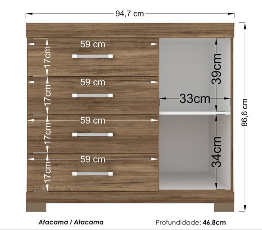 Avind Cómoda con 4 Cajones y 2 Puertas