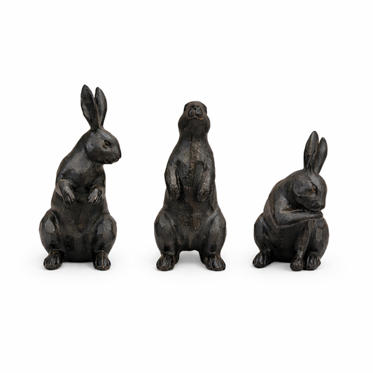 10% SUMMER SALESet de 3 Conejos de Resina, Acabado Hierro Fundido (3 Estilos)