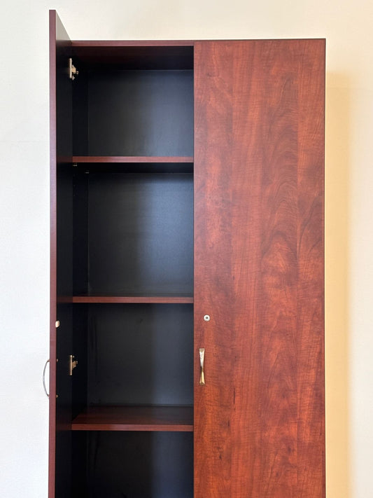 Librero con puerta de vidrio y gabinete con puerta de madera