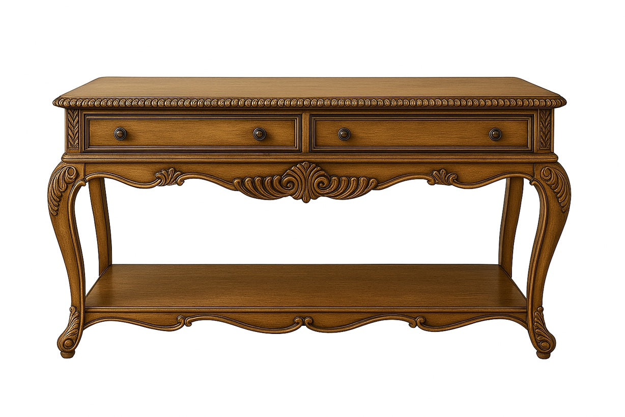 El Arrimo Imperial Dorado es una pieza elegante y sofisticada, diseñada para realzar cualquier espacio de tu hogar con su estilo clásico y detalles tallados. Fabricado en madera de alta calidad y acabado en un fino tono dorado envejecido, combina resistencia y estética en un solo mueble. Sus medidas de 138 cm de largo, 52 cm de ancho y 78 cm de alto lo hacen ideal para recibidores, livings o comedores, ofreciendo un equilibrio perfecto entre funcionalidad y diseño.
