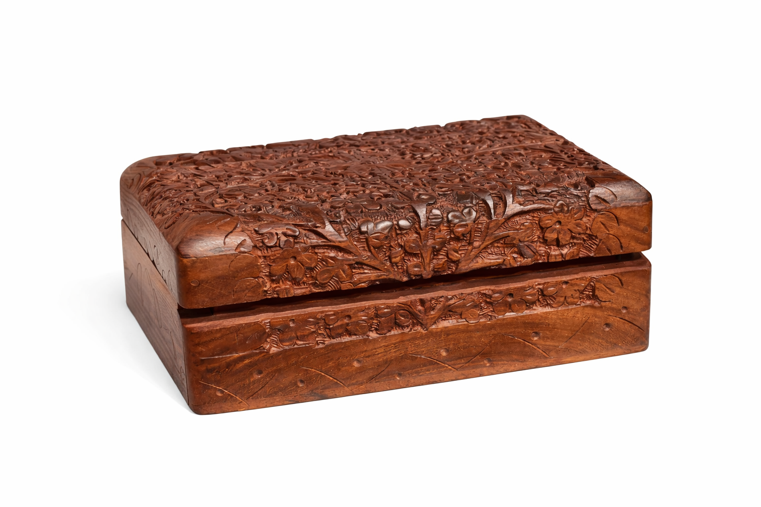 Esta caja de madera tallada a mano en palo de rosa es una pieza de elegancia artesanal. Con unas medidas de 20 cm de largo, 12.5 cm de ancho y 6.4 cm de alto, combina la robustez de la madera con la delicadeza de su tallado. El palo de rosa, conocido por su grano distintivo y tonos cálidos, resalta en cada detalle de esta caja. Es perfecta para guardar joyas o pequeños tesoros, añadiendo un toque de refinamiento a cualquier espacio. Esta pieza no solo ofrece funcionalidad, sino que también es un testimonio de la habilidad artesanal, ideal tanto como regalo especial como para complementar la decoración de cualquier hogar con su belleza natural y su diseño único.