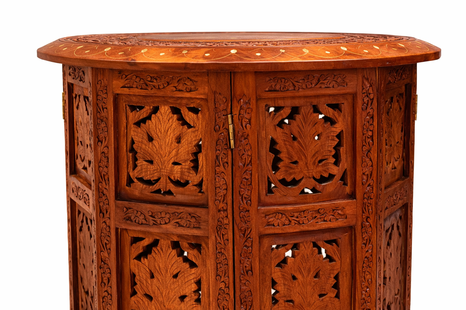 Mesa Lateral Avind – Diseño Octagonal en Palo de Rosa y Bronce Tallado a Mano