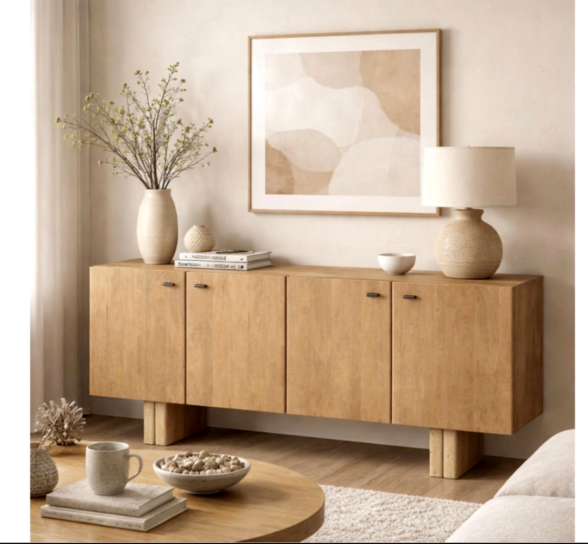 El Buffet Nórdico Zen destaca por su diseño minimalista y cálido, inspirado en el estilo escandinavo contemporáneo. Su acabado en color natural aporta luminosidad y sensación de amplitud al ambiente, integrándose fácilmente en distintos estilos de decoración y convirtiéndose en una pieza ideal para livings y comedores modernos.