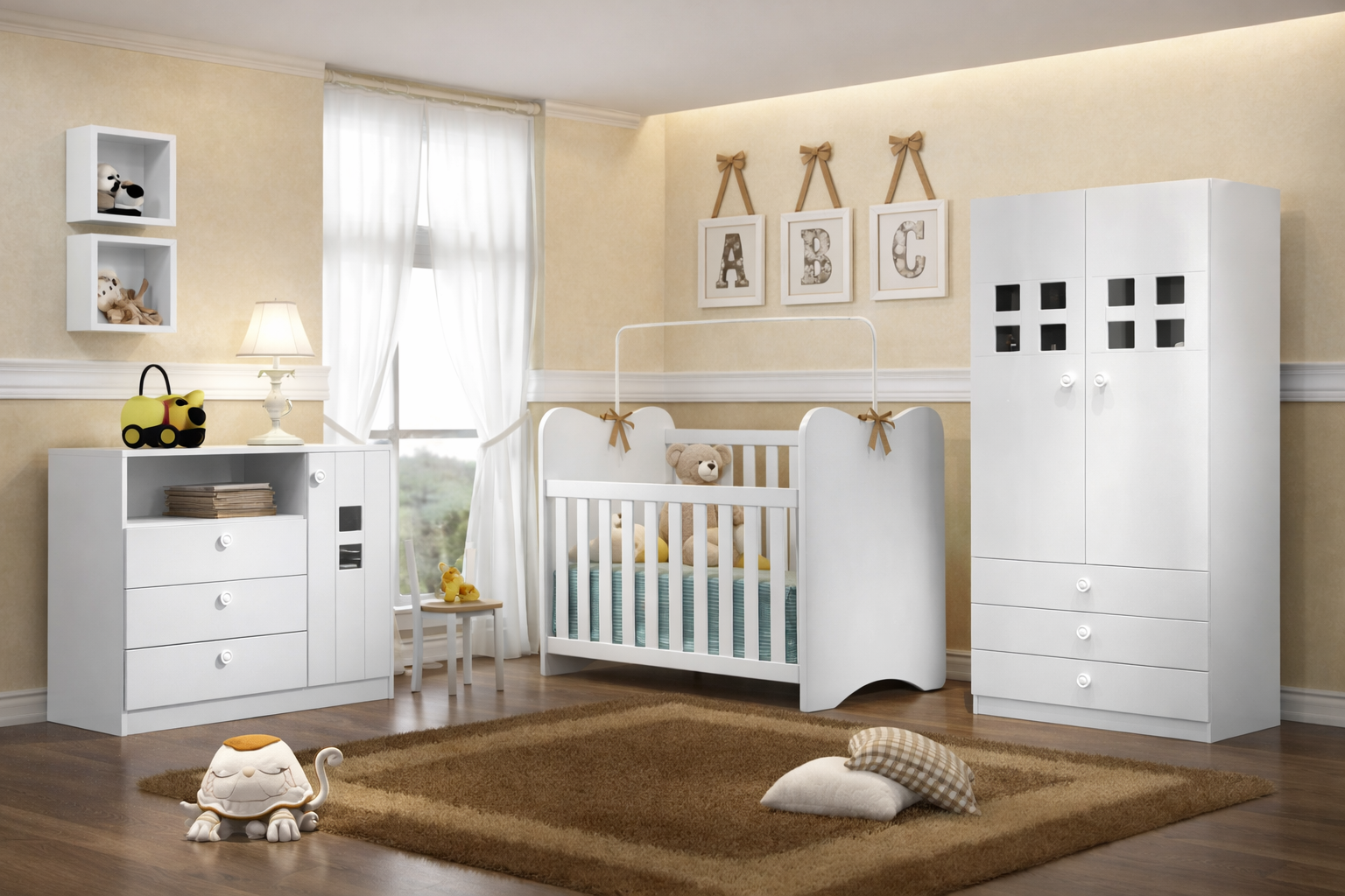 Color Blanco Elegante: El color blanco le confiere un aspecto moderno y atemporal, que se adapta fácilmente a cualquier estilo de decoración y permite combinarla con otros muebles y accesorios infantiles.
