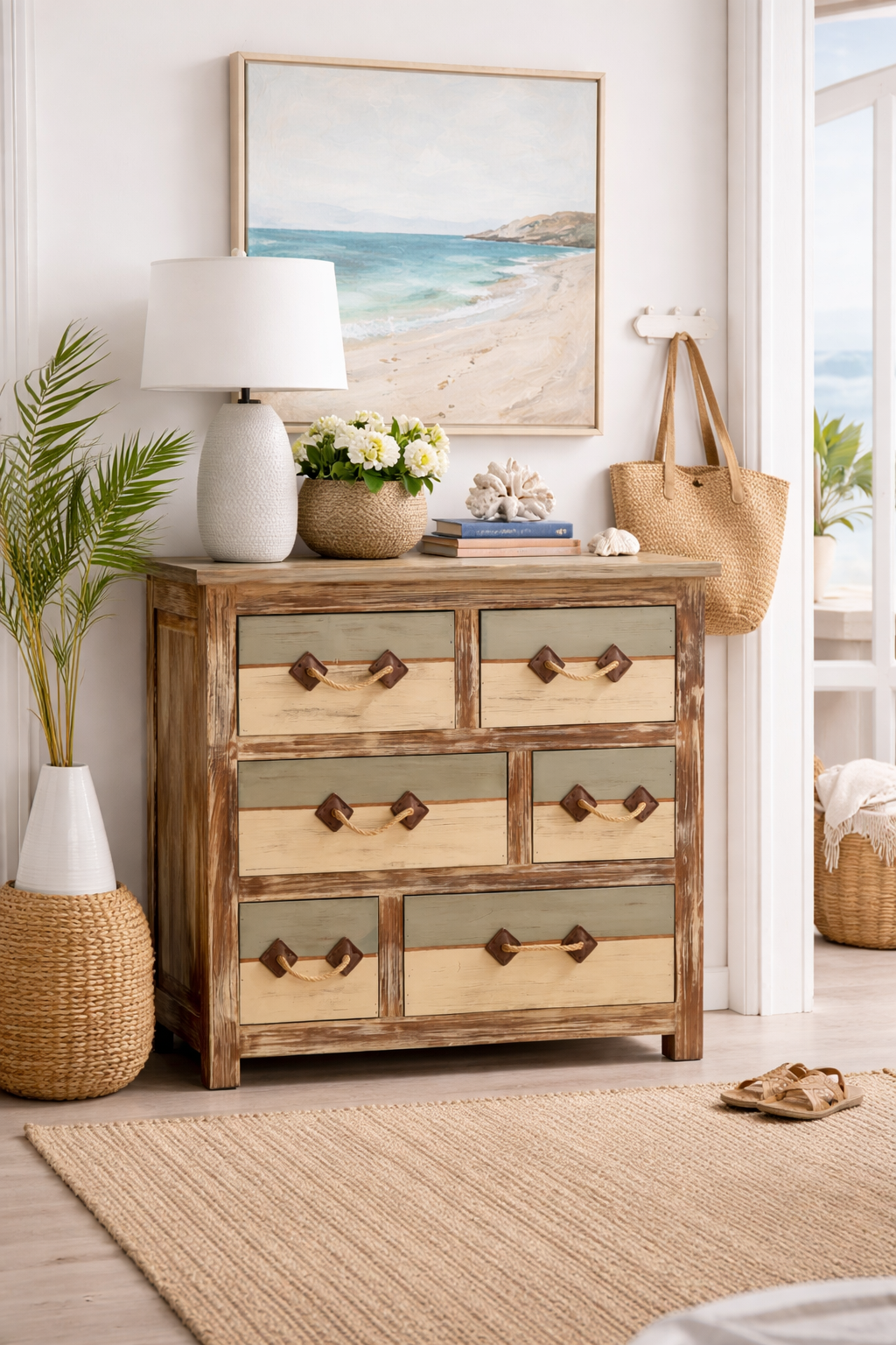 El Gabinete Playero es la opción ideal para quienes buscan un mueble funcional y decorativo, con un diseño que evoca la tranquilidad y la frescura de la costa.