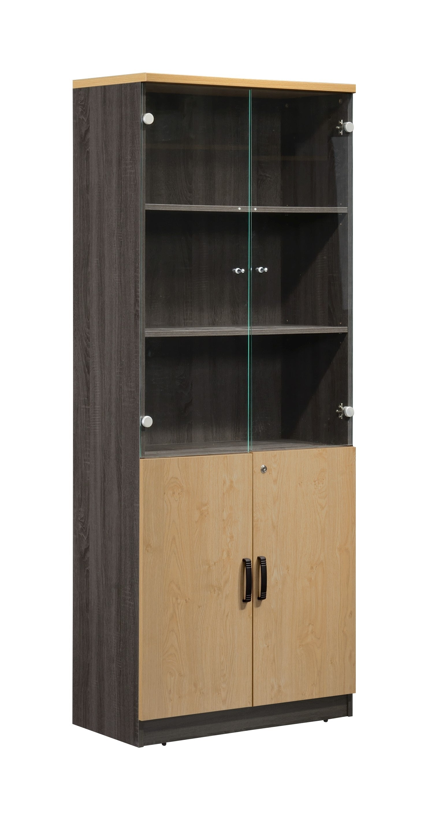 Renueva tu espacio de trabajo con nuestro librero con puertas de vidrio en la parte superior y con puertas de madera en la parte inferior. Sus medidas son de 800x420x2035 mm. Este mueble combina elegancia y funcionalidad, ofreciendo un amplio espacio de almacenamiento para tus libros, documentos y objetos decorativos. Su diseño clásico con puertas de madera añade un toque cálido y profesional a cualquier oficina.