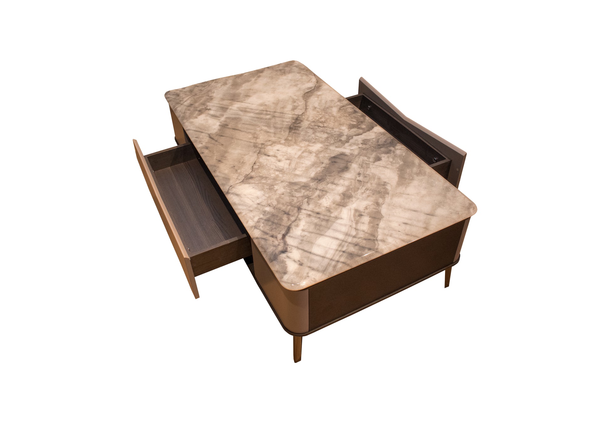 Presentamos la Mesa de Centro Atlanta, una pieza que combina sofisticación y funcionalidad en un diseño moderno. Esta mesa de centro rectangular, fabricada en madera de trupan nativa, cuenta con una base de piedra en color gris que aporta un toque de frescura y elegancia. Cuenta con dos prácticos cajones, uno a cada lado, que ofrecen espacio adicional para guardar controles remotos, revistas, mantas u otros objetos esenciales del día a día. Su diseño simétrico permite un acceso cómodo desde ambos lados, ideal para espacios compartidos o distribuciones abiertas. Las patas cromadas añaden un detalle brillante y contemporáneo, mientras que la cubierta de piedra Carrara introduce un acabado lujoso y resistente.