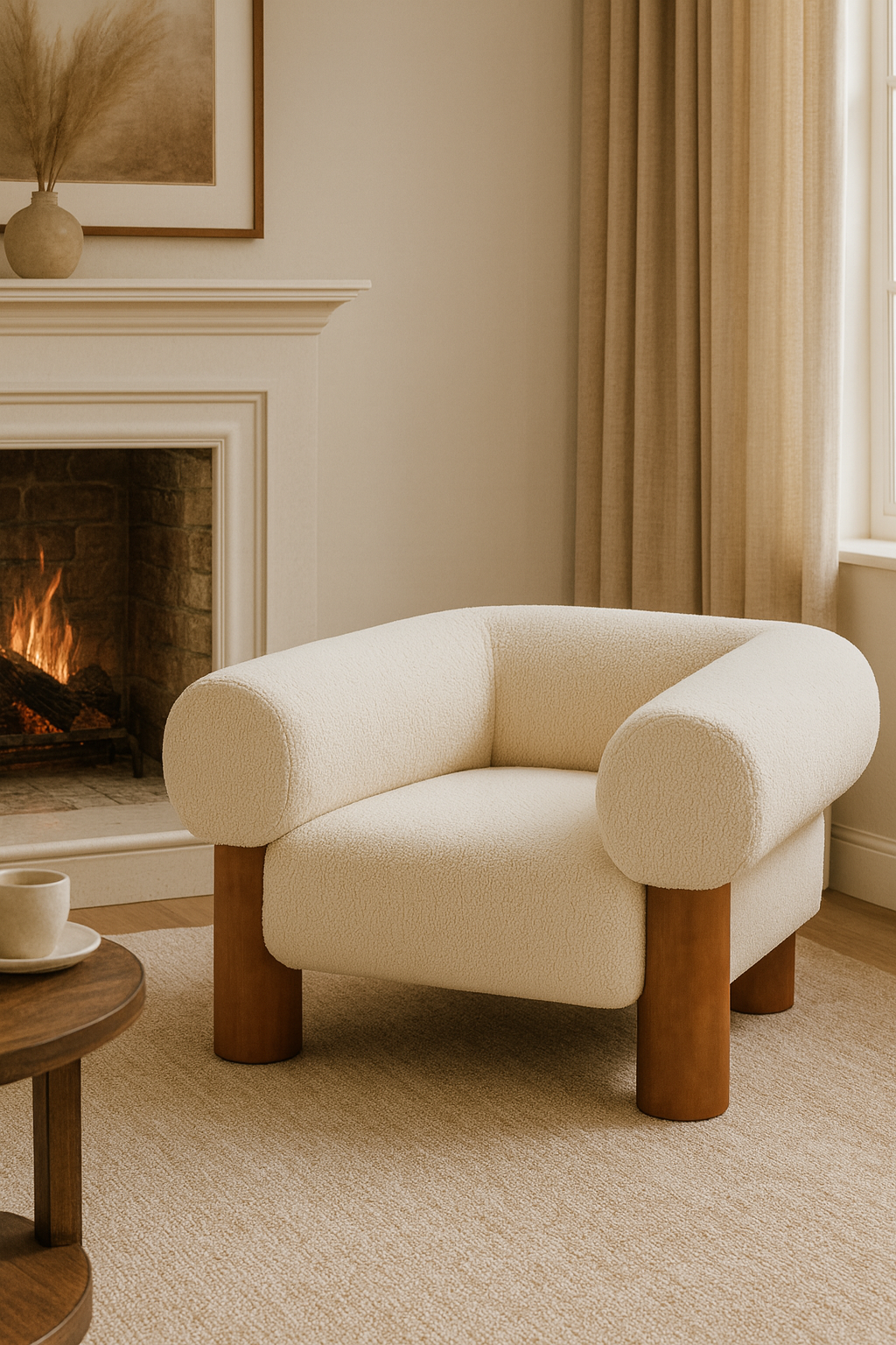 La Poltrona Nórdica combina diseño nórdico, líneas curvas y un tapiz bouclé premium que aporta textura, calidez y modernidad. Con un ancho total de 110 cm, un alto de 76 cm y una profundidad de 95 cm, ofrece una presencia equilibrada que se adapta perfectamente a espacios amplios o rincones de lectura.