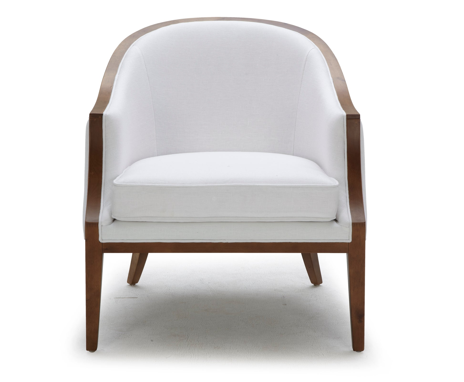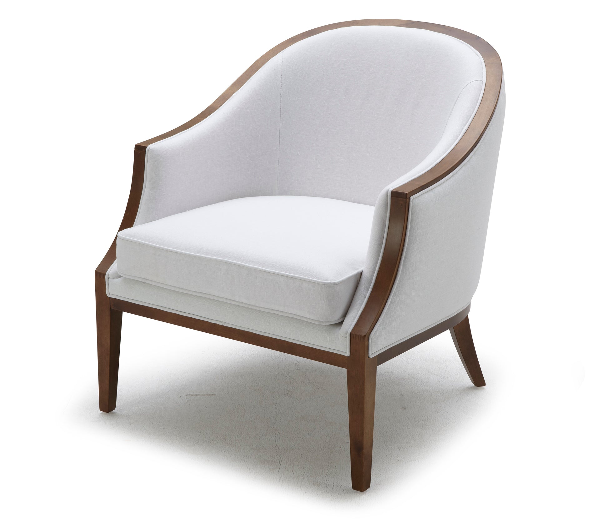 La Poltrona Serena destaca por su diseño sofisticado y materiales de alta calidad que combinan estilo, comodidad y calidez natural. Su tapiz en chenille gris claro brinda una textura suave y elegante, mientras que su borde de madera expuesto enmarca con carácter cada línea de su estructura, aportando un toque clásico renovado.