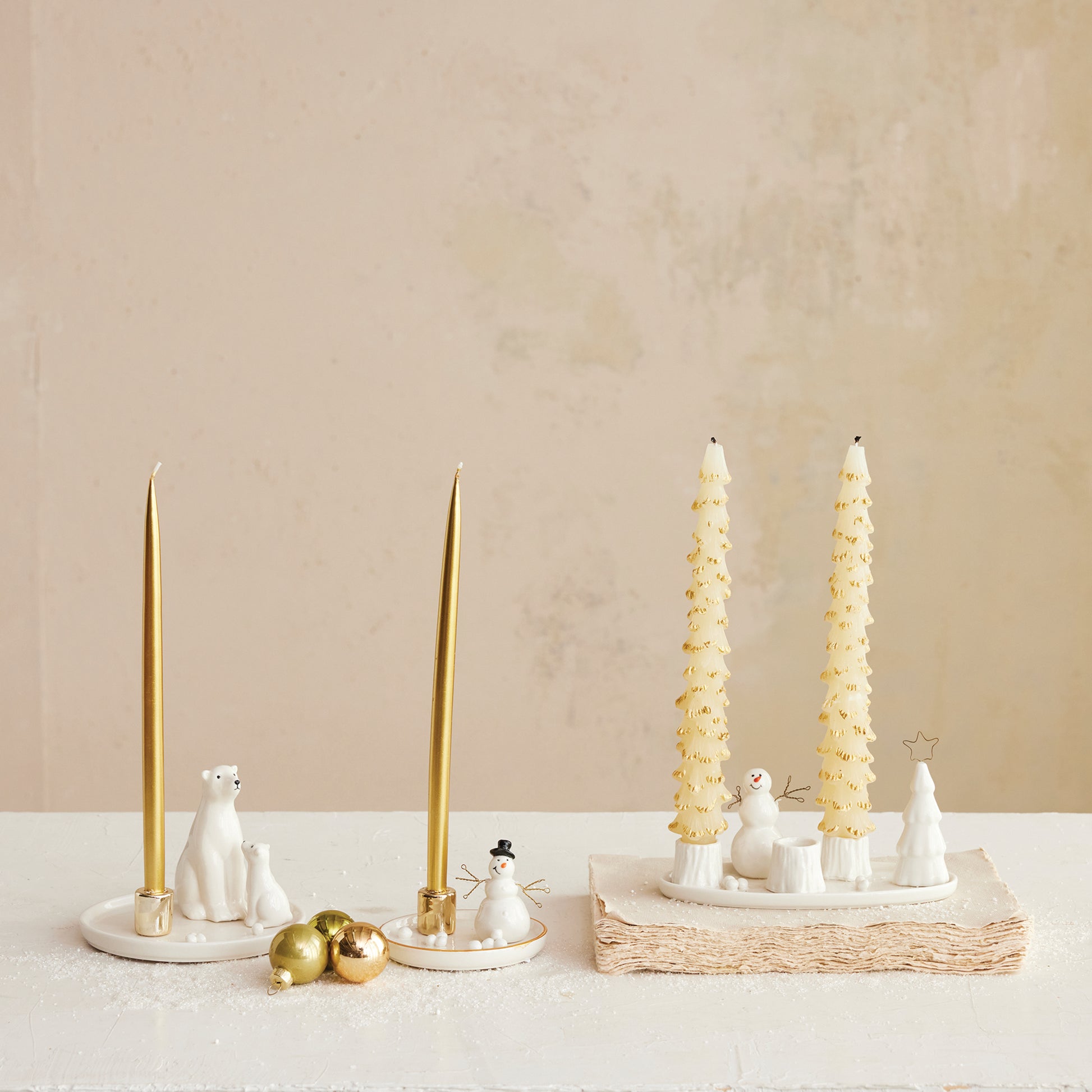 Candelabro Navideño Muñeco de Nieve y Árbol en Gres