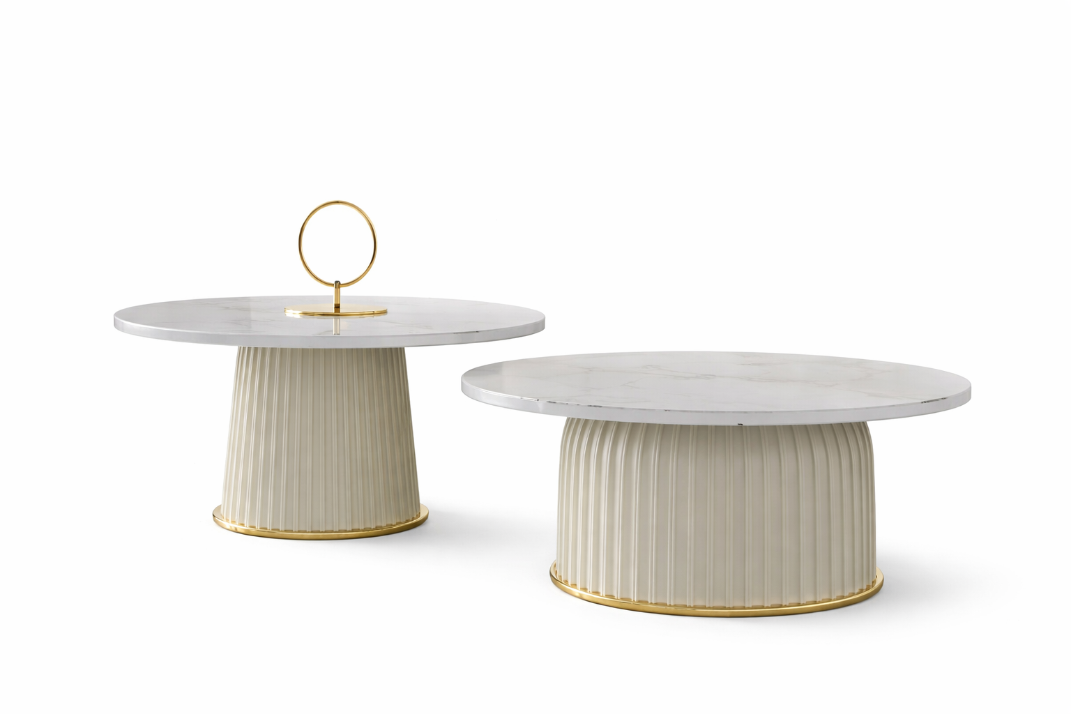 La base acrílica proporciona un toque moderno y liviano, mientras que la piedra blanca asegura un acabado elegante y duradero. El Set de Mesas de Centro Santorini es ideal para quienes buscan una solución de diseño contemporáneo y estilizado.
