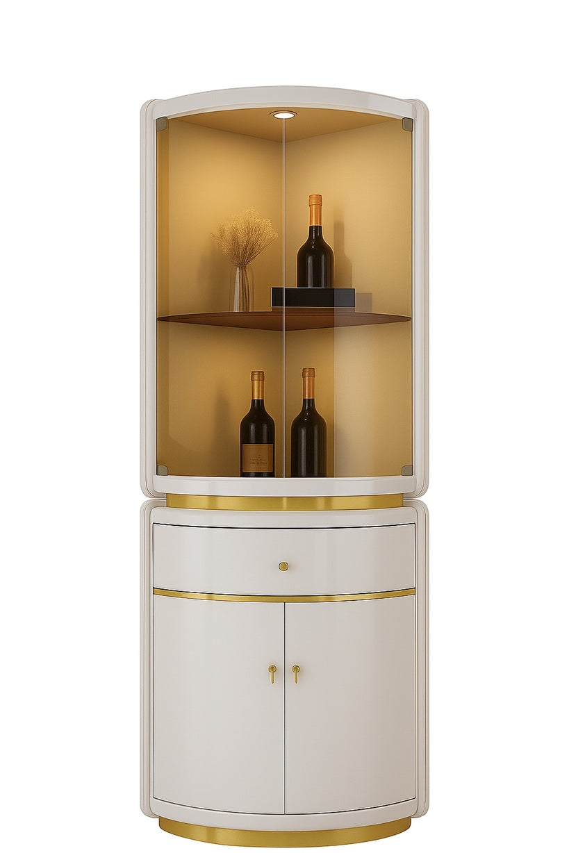 Alma es una vitrina moderna diseñada para quienes buscan equilibrio entre estética, funcionalidad y organización en el hogar. Su acabado blanco mate, líneas limpias y diseño vertical aportan luminosidad y amplitud visual, mientras que sus detalles dorados suman un toque de sofisticación y elegancia.