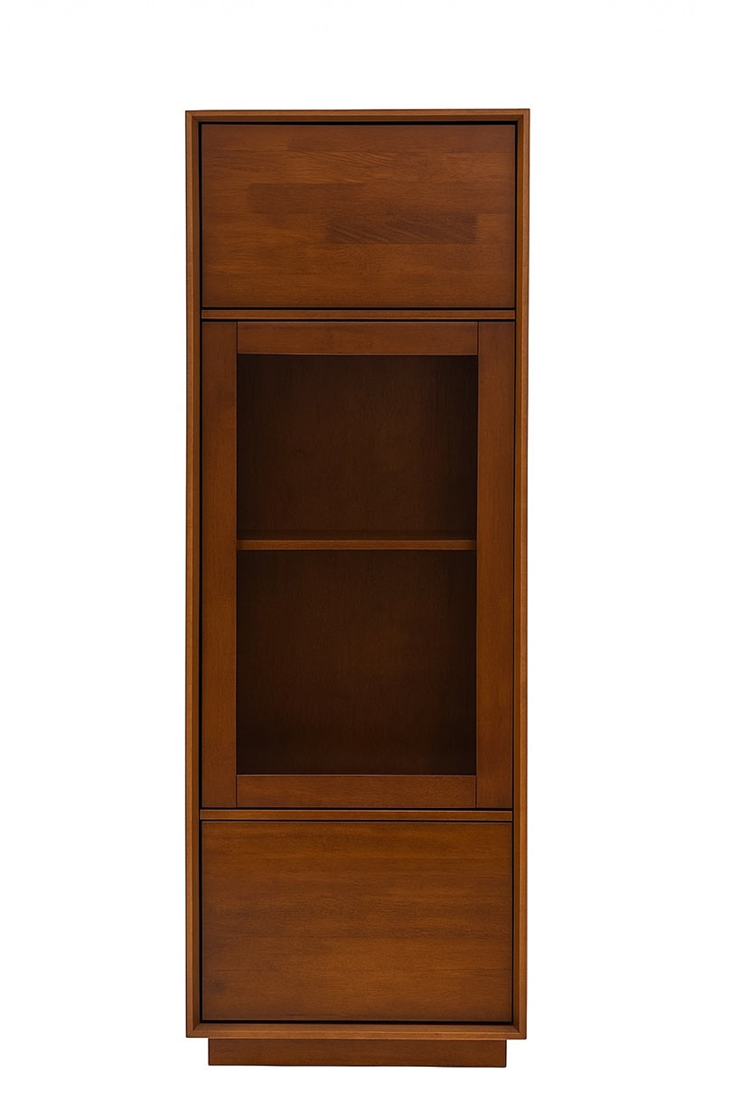 La Vitrina Reloj es una pieza única y refinada, ideal para quienes buscan un mueble que combine diseño y practicidad. Fabricada en resistente madera de caucho, esta vitrina aporta calidez y sofisticación a cualquier espacio, además de contar con detalles modernos que la convierten en el complemento perfecto para salas de estar, estudios o recibidores.